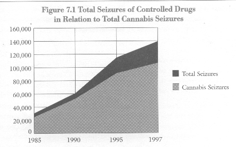 Figure 7.1 Total Seizures of Controlled Drugs in Relation to Total Cannabis Seizures