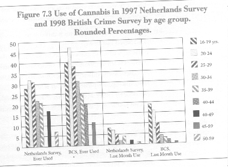 Figure 7.3 Use of Cannabis in 1997 Netherlands Survey and 1998